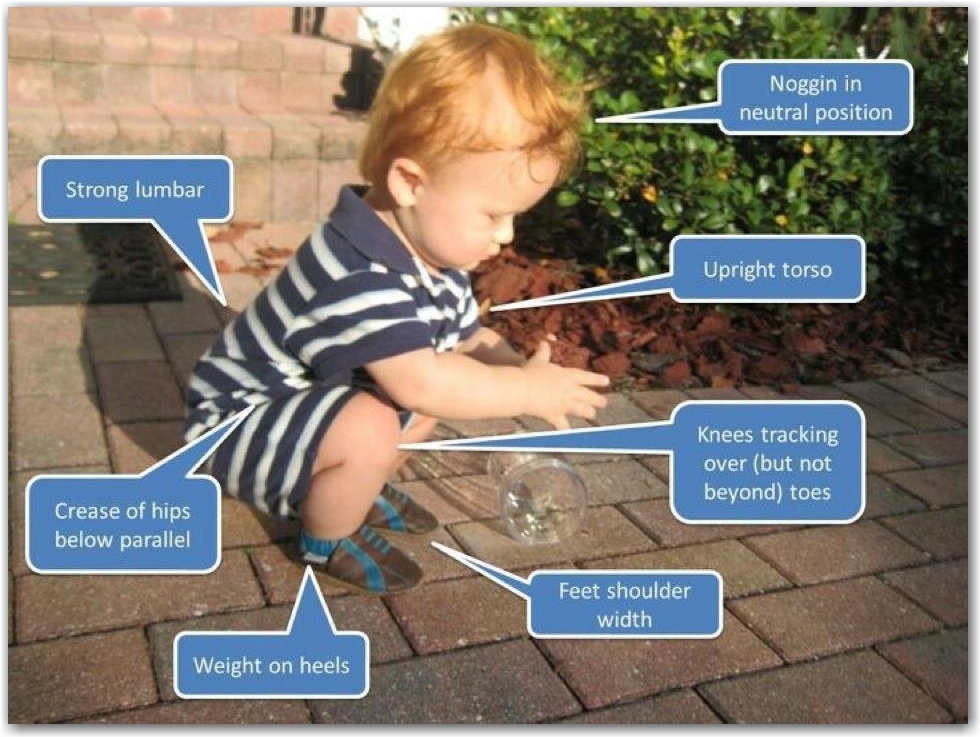 Lots of squats going on today. So, before you do yours, compare your form to the form of this toddler. We’re born with perfect squatting technique. Why do we lose it as we get older? If your squat doesn’t hit these points of performance, work on it prior to hitting the work today!
