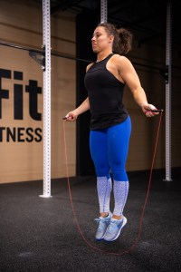 This workout begins with the athlete standing under the pull-up bar. After the call of “3, 2, 1 … go,” the athlete will have 8 minutes to perform 25 toes-to-bars, followed by 50 double-unders and 15 squat cleans, then perform 25 toes-to-bars, 50 double-unders and 13 squat cleans, this time at a heavier weight. If the athlete does not complete all 178 repetitions within 8 minutes, their workout is over. The athlete will stop and record their score.