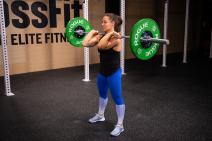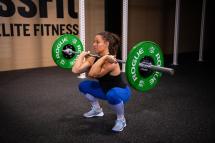 The barbell begins on the ground. Touch and go is permitted. No bouncing or dropping and catching the barbell on the rebound. Once dropped, the barbell must settle on the ground before the athlete begins the next repetition.  The athlete must pass through a full squat with hips below the knees. Receiving the barbell in the bottom of the squat is not required; a power clean or split clean followed by a front squat will be permitted, but a deadlift followed by a hang clean is not allowed.  The rep is credited when the athlete’s hips and knees are fully extended, and the bar is resting on the shoulders with the elbows in front of the bar.