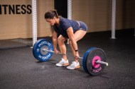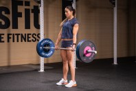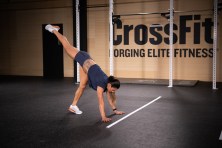 Prior to starting the workout, the athlete will need to mark a line on the wall for the handstand push-ups (details in Movement Standards section). Lengths on the floor will also need to be measured and marked for the handstand walk. This workout begins with the barbell on the floor and the athlete standing tall. After the call of “3, 2, 1 … go,” the athlete may perform 21 deadlifts, then move to the wall for 21 handstand push-ups, then complete 15 deadlifts and 15 handstand push-ups, then 9 deadlifts and 9 handstand push-ups.The athlete may then move on to the heavier barbell to complete 21 deadlifts, a 50-ft. handstand walk, 15 deadlifts, another 50-ft. handstand walk, and finally, 9 deadlifts and a third 50-ft. handstand walk. The athlete’s score will be the time it takes to complete the workout or the total number of repetitions completed before the 9-minute time cap. Each completed 5-foot section of the handstand walk will count as 1 rep.