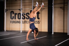 Scaled athletes may perform hand-release push-ups instead of handstand push-ups.